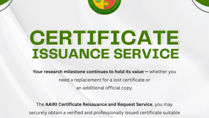 The AAIRI Certificate Reissuance Service provides a secure and verified way to obtain an official replacement copy for academic, professional, or institutional use.